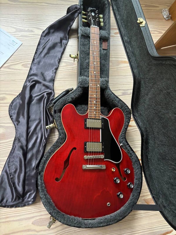Gibson Custom Shop 50th Anniversary '60 ES-335 is back and better than ever thanks to a year of studying, scanning, and listening to original examples. The expert craftspeople at Gibson Custom Shop have rendered every contour, profile, inlay and color of the priceless vintage models in magnificent detail. The result is a playing and ownership experience that will keep you coming back for more. The Gibson Custom Shop 50th Anniversary '60 ES-335 Reissue models utilize sharp horn cutaways, and PAF Pickups